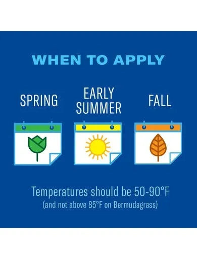 - Apply in spring after the lawn is actively growing and has been mowed 2 times